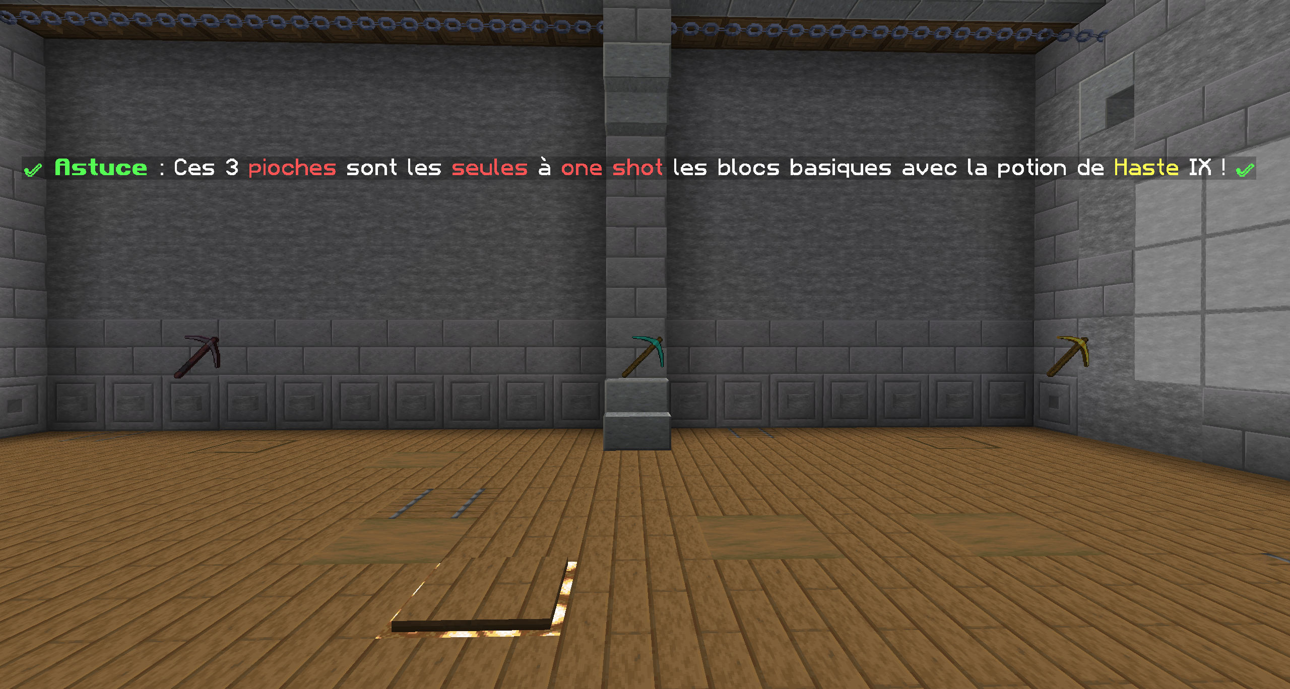 Sur les 5 pioches, il y'a que 3 pioches qui one shoot les blocs basiques ! (Stone, deepslate etc...)